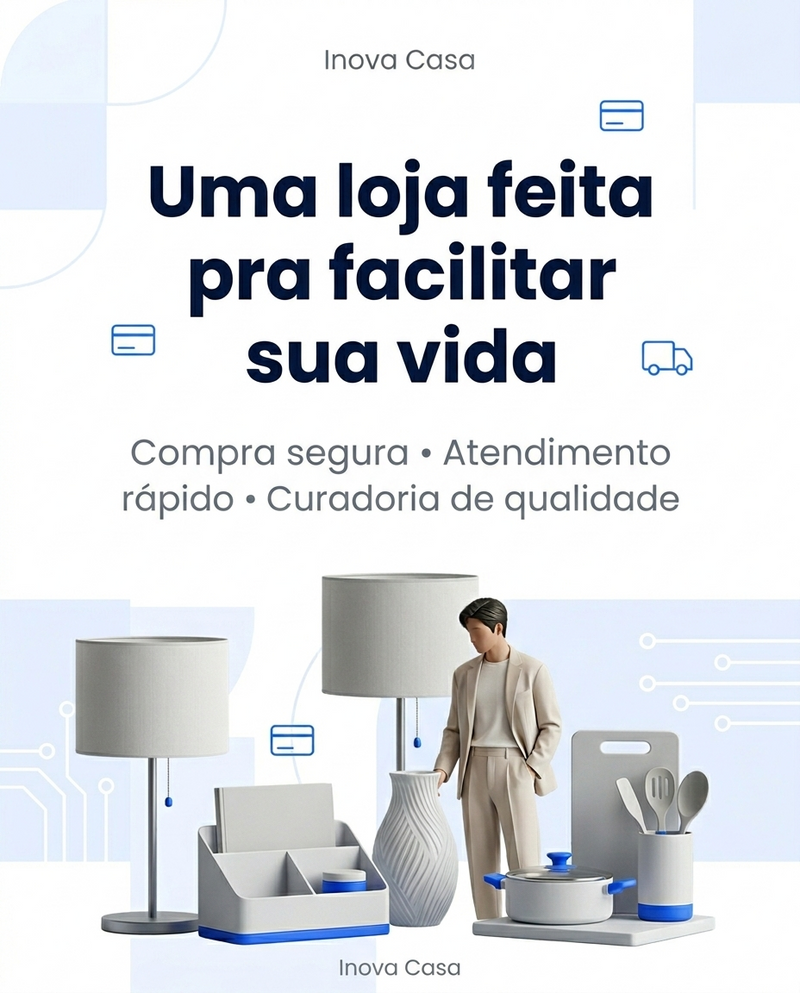 Nosso compromisso é oferecer uma compra simples, segura e com suporte rápido quando você precisar. A Inova Casa existe para facilitar a sua rotina e trazer soluções inteligentes para o seu lar.